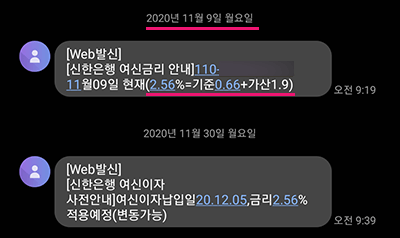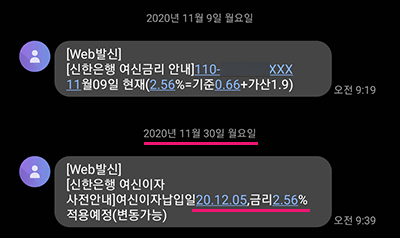 ④ 11월 30일 09:39분 2.56% 금리 안내가 또 왔다.